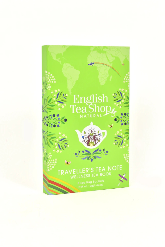 Az English Tea Shop Utazó Wellness bio teaválogatás "zöld" a mindennapokhoz nyújt támogatást – legyen szó energiáról, kiegyensúlyozottságról vagy pihentető alvásról.
