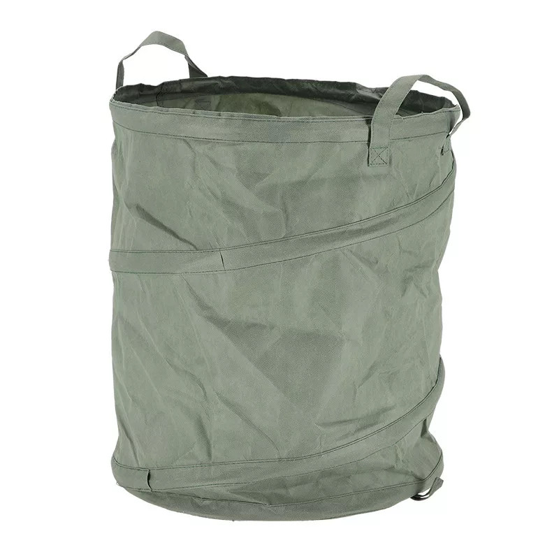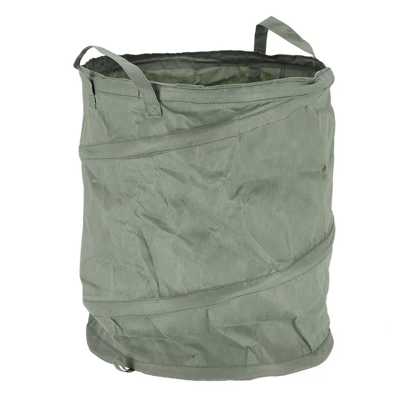 A zsák könnyen tárolható, hiszen használaton kívül összehajtható, majd amikor szükséged van rá, az anyagba épített fémgyűrűknek köszönhetően azonnal felugrik és megtartja a függőleges formáját. A széles felső nyílás megkönnyíti a levelek, gyomok és egyéb szerves hulladék betöltését.