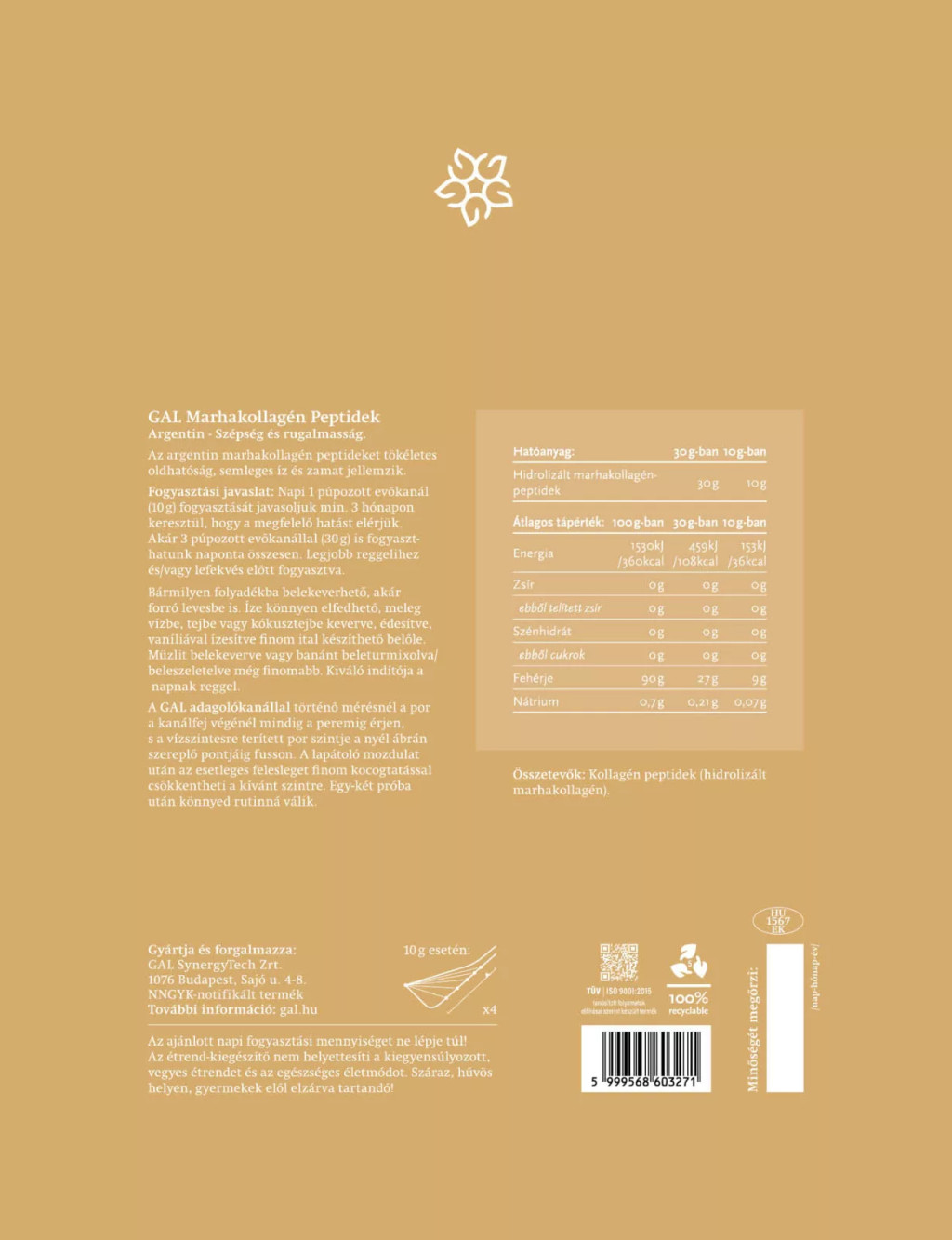 Az emésztést már alig igénylő kollagén peptid (hidrolizált marhakollagén) segíti a bőr fiatalos rugalmasságának megőrzését és az ízületek megfelelő működésétét, hajlékonyságát.