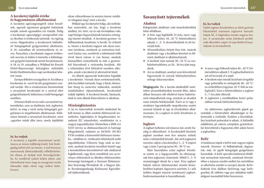 Az egyik legértékesebb része a könyvnek a kecsketej feldolgozásával foglalkozó fejezet. Részletes útmutatót kapunk a kecskesajt készítéséhez, valamint különféle savanyú tejkészítmények előállításához. A receptek célja, hogy a naponta keletkező tej változatosan és hatékonyan legyen felhasználható.