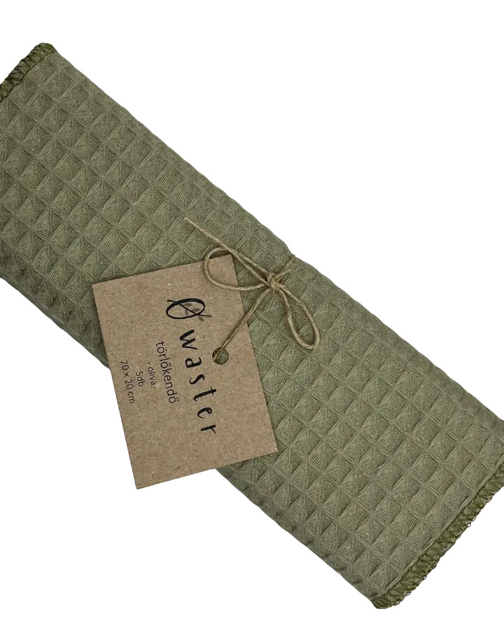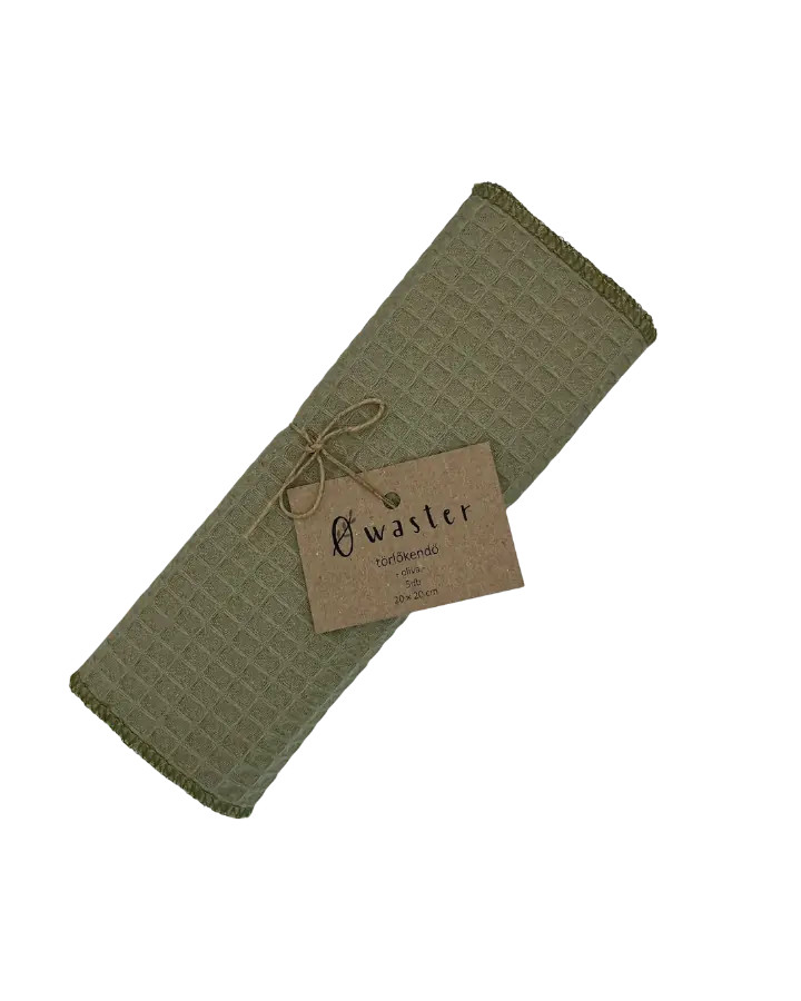 Az Owaster törlőkendő alapanyaga 100 % pamut darázsanyag, mely magas nedvszívó képessége miatt népszerű a mosható háztartási textilek körében.