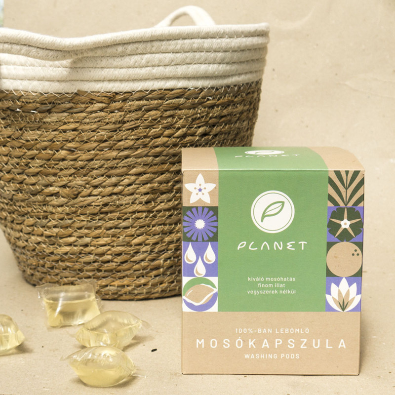 - Ha nem tudsz lemondani a mosókapszula kényelméről, válaszd a Planet mosókapszulákat! A Planet mosókapszula anyaga és a benne lévő mosószer is 100%-ban lebomló. Minden kapszula vegán, kizárólag növényi eredetű, mosóerejét a kókusztenzid adja.
