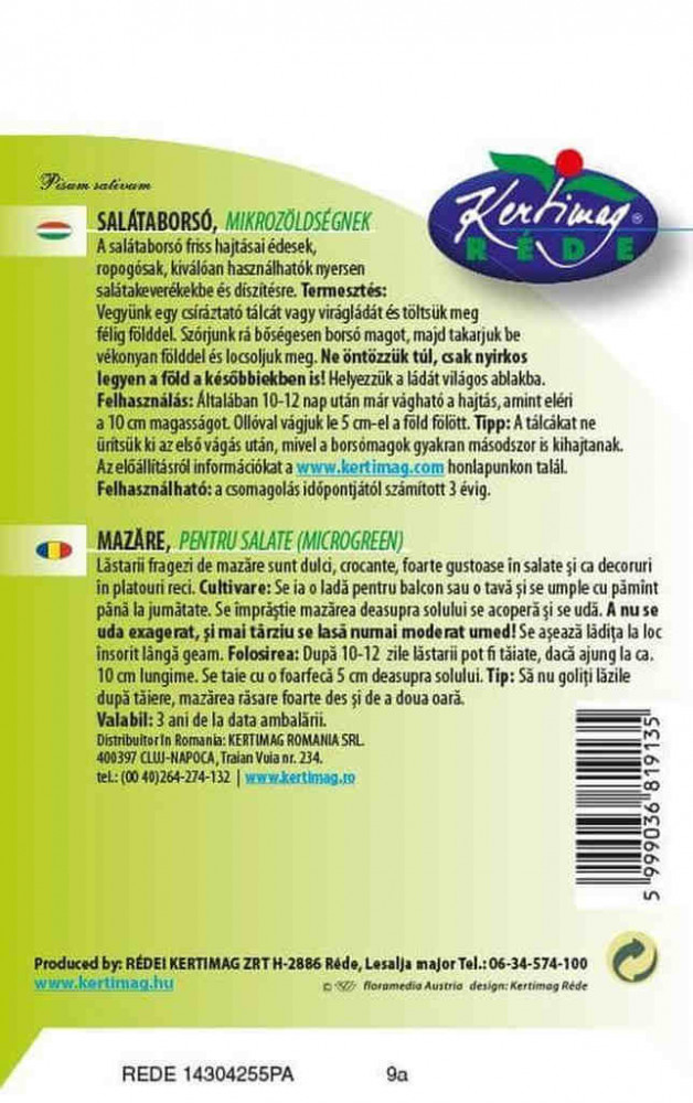 Gyártja: Rédei Kertimag Zrt. H-2886 Réde, Lesalja major