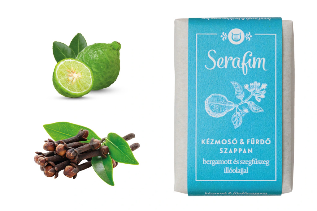 A Serafim Kézmosó & Fürdőszappan egy természetes, Magyarországon kézzel készült natúr szappan, amely bergamott és szegfűszeg illóolajjal frissíti és ápolja a bőrt.