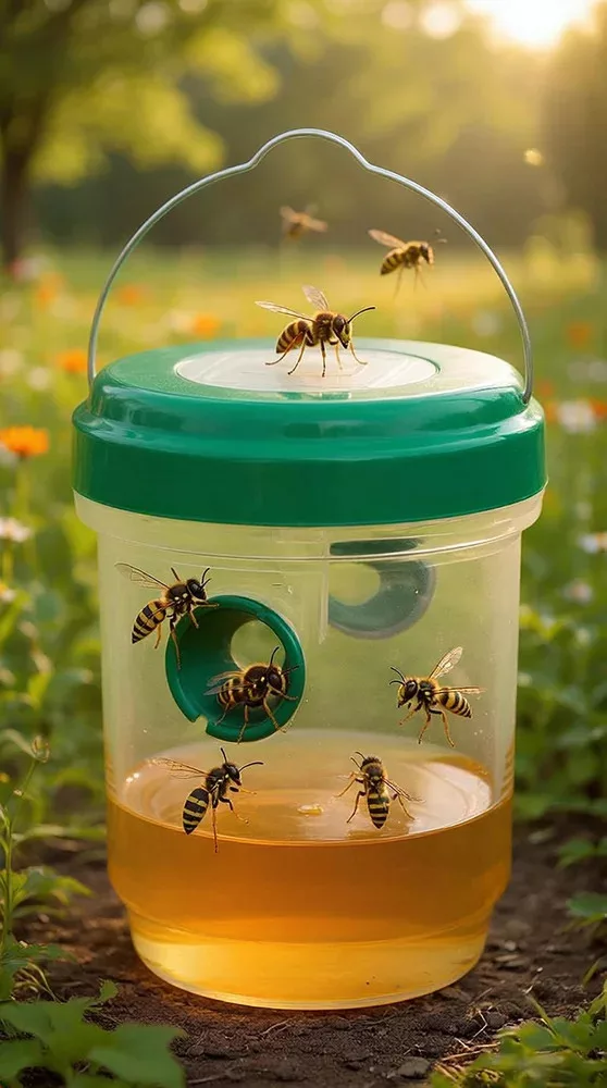 A csapdát lehetőleg ne virágok közvetlen közelébe helyezd, hanem inkább olyan pontra, ahol a darazsak gyakran megjelennek, például gyümölcsfák vagy hullott gyümölcs közelébe.