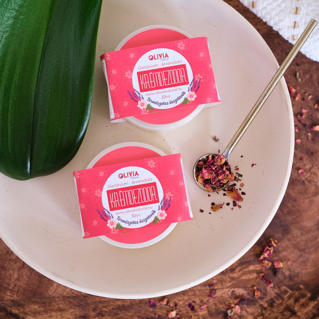 A Rózsageránium (másnéven rózsamuskátli) és a levendula olajak közül a geránium illata intenzívebb, így egy igazi nőies rózsás illattal rendelkezik. A levendula olaj tartalma miatt pedig fertőtlenítő hatású.